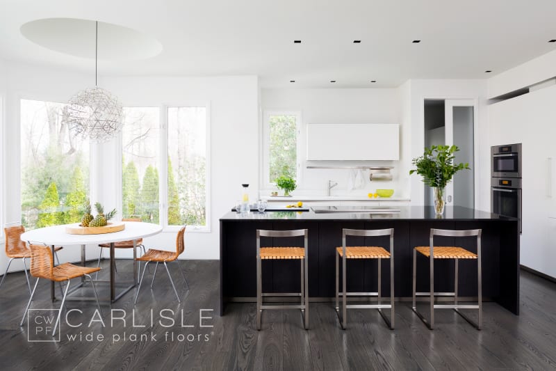 Deciding if wood floors are right for your kitchen. The addition of plants helps to bring life to the space. It adds warmth and richness to a room. This bright kitchen's wood floors complement the cabinetry and the tile used in the workspace of the kitchen well. Adding wood flooring is one of the most popular kitchen upgrades.